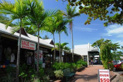 ポートダグラスの目抜き通り「マクロッサンストリート」を散策してみました!ケアンズのダウンタウンと比べると、こじんまりとはしていますが、なかなか魅了的な街並みが続いていました。個性的で、ちょっぴりアートなお店が多い印象で、ケアンズよりも高級なリゾートのイメージです。