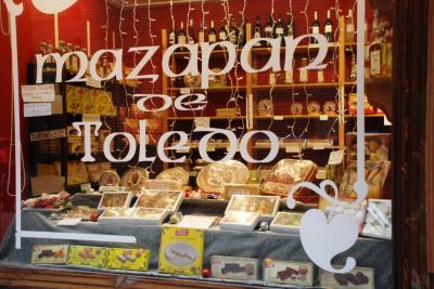 トレド伝統のお菓子マザパンの有名店です!いわゆる「マジパン」と同じで、アーモンドの粉とハチミツ、お砂糖でできたお菓子。想像通り、激甘で脳天にず~んと来る感じ。マザパンは、13世紀にアラブ人から伝わったお菓子だそう...。なるほど、アラブのお菓子も甘いので、その影響かもしれません。