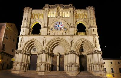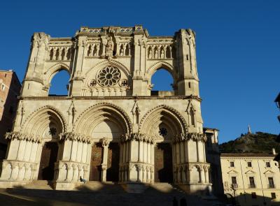 13世紀に建てられたゴシック様式の大聖堂は、クエンカ旧市街のマイヨール広場に建っています。聖堂内は、周歩廊が二重になっているのが特徴だとか...事前に見たガイドブックでは開いているとのことでしたが、イブのためか、なぜかクローズされており、残念ながら中を見学することはできませんでした。事前に、インフォメーションでオープン時刻のチェックをしてから訪れた方がいいかもしれません...。夜も訪れましたが、やはりクローズされていました。昼間は光が強すぎてわかりませんでしたが、バラ窓のステンドグラスがとてもキレイでした。