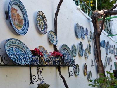 アルバイシンは、グラナダにある丘陵の地区で、中世ムーア人の統治時代の建築様式を残す一角。アルハンブラ、ヘネラリーフェと共に、アルバイシンの登録名で、UNESCOの世界遺産に登録されている歴史地区ですが、どのガイドブックにも治安の悪さが書かれています。そんなコトもあって、前回はちらっと覘いたのみだったので、今回はじっくり探索してみました!モチロン、注意するに越したコトはありませんが、観光時期はかなりの観光客がいますので、まず問題ないという印象です。可愛いガラナダ焼きが壁一面に飾られている家があったり、きれいなパティオがあったりと風情ある町並みは、そぞろ歩きにぴったりです。