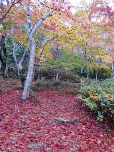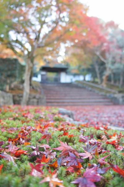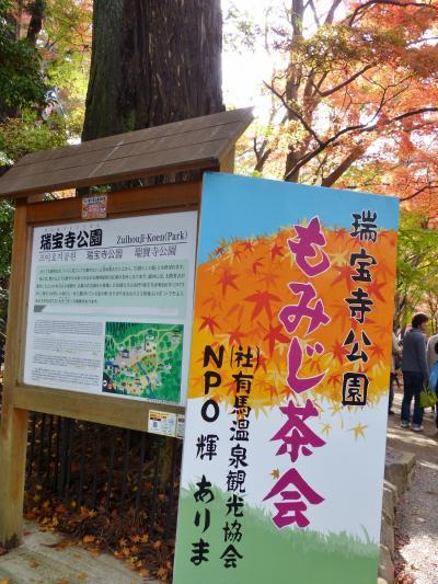 太閤さん(秀吉さん)が、「いくら見ても飽きない」と、瑞宝寺の紅葉を気に入ったという故事から、この地の紅葉には「日暮しの庭」、「錦繍谷」の別称があります。「瑞宝寺」、という名前ですが、昔、「瑞宝寺」というお寺があった場所を神戸市が公園として整備したもので、現在お寺はありません。お寺の名残の山門が今も残っています。ここの紅葉のピークは周辺より1週間程早く、関西の紅葉はまだまだこれから...という時期に訪れましたが、ここの紅葉はすでに「散り紅葉」でした!