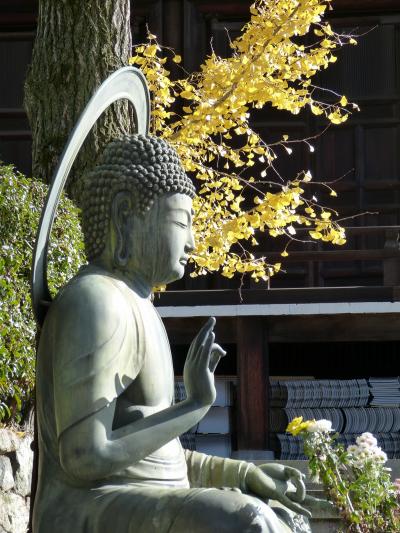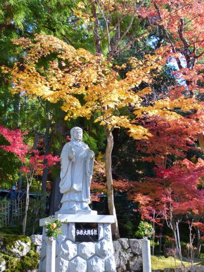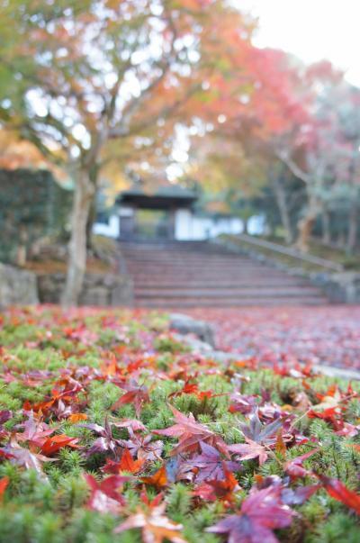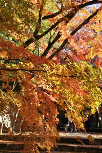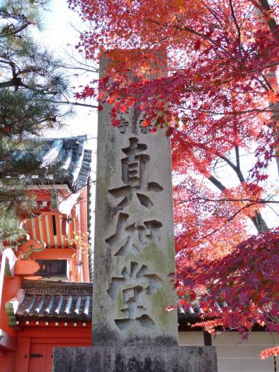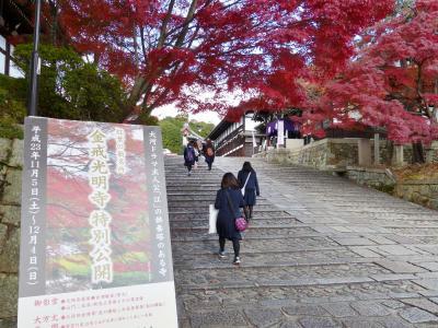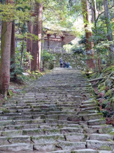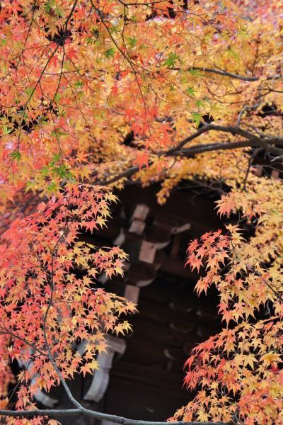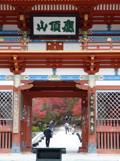 織田信長の比叡山焼き打ちの直後、ここも焼き打ちに遭いましたが、幸い、国宝第一号指定のご本堂、三重塔、ニ天門は火難を逃れたとか。参道を登って「ニ天門」をくぐり、見上げると...なんと、国宝三重塔は改修中でビニールシートに覆われていました!気をとり直し、ご本堂の中へ入ると、素晴らしい国宝や国宝級の仏像がズラリ!残念ながら、撮影禁止なので、写真はありません。紅葉そのものはあまり多くはありませんが、お寺や仏像好きな方にはオススメの古刹です...