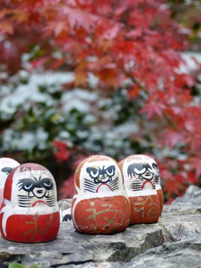 「勝尾寺」は、その名のとおり、人生全てに「勝つ!」として、勝ち運信仰の歴史あるお寺。「勝ちダルマ」で有名なお寺だけに、そこかしこにダルマさんが出現。石の上にも、木の根っこにもダルマさんの嵐...じ~っと見てみると、表情になんだか愛嬌があり、かわいく見えてくるから不思議です。お寺自体は古く歴史あるお寺なのですが、建物やお庭は改修され、かなり新しい感じで古刹ならではの味わいはありません。紅葉とダルマさんの光景は楽しいです。