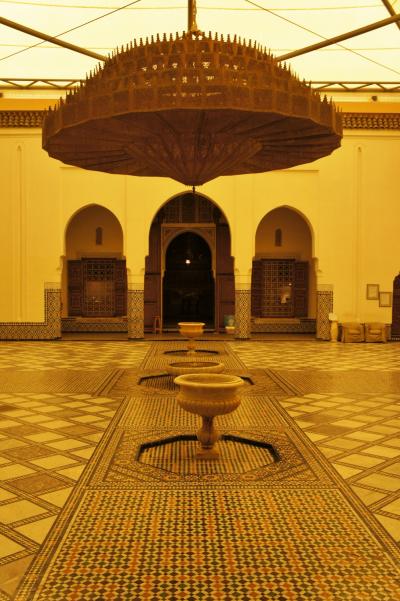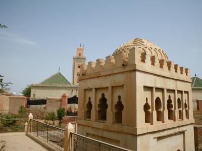 12世紀に建てられた水利施設で、マラケシュ最古の建物といわれています。1952年に発掘されるまでの間、何百年もの間忘れ去られていたらしく、今見ても、周りの遺構は放置されている感が満載です。 サーモンピンクの色合いが、いかにもマラケシュという感じで、ダビデの星模様がしっかり残っています。広場みたいなところに、ポツンとこれだけあるので、場所はとてもわかりやすく、マラケシュ博物館のはす向かいに位置します。