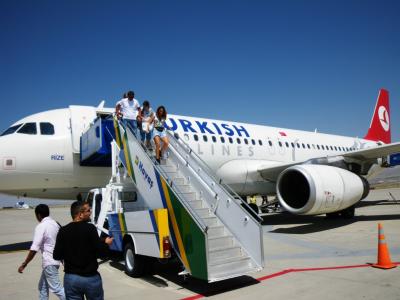 カッパドキアへ航路は2つ、大き目のカイセリ空港か、日に2便のネヴシェヒル空港です。トルコ航空でチケットを買う際、ネヴシェヒル空港発着のチケットの方が格安で出ていたので、迷わずネヴシェヒルを選択しました。本当にこじんまりとした空港ですが、トルコの他の空港と同様、空港施設に入る際と、出発する際の2度X線検査を受ける必要があり、繁忙期は結構な行列ができるので、空港へは早目に行く必要があります。タクシーなどは常駐していないので、前もって宿などにタクシーの手配をお願いしておくとスムーズです。
