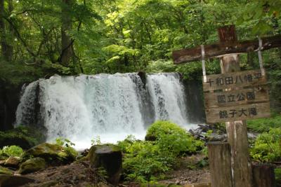 道路沿いに「銚子大滝」の看板を見つけ、渓流沿いをしばし歩いたところで、やっと滝がみつかりました!ツアーだとピンポイントで連れて行ってもらえますが、個人だと少々迷うかも...。とはいえ、人の多いほうへ向えばすぐ見つかります。幅20メートル、高さ7メートルの見事な水量を誇る「銚子大滝」は、ちょうど前日大雨が降ったことも重なりかなりの水量でした!滝の横にいると、ミストがばっさばっさかかり、マイナスイオンたっぷり!地面は常に濡れているので、足元に注意が必要です。