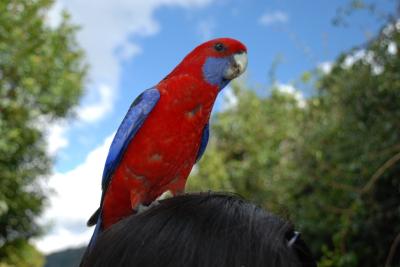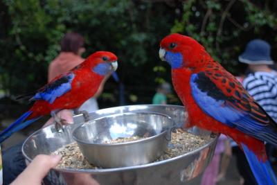 世界遺産 ラミントン国立公園 グリーンマウンテン地区にある「オライリーズ」に行きました。「オライリーズ」は、スパホテル、ティーハウス、ワイナリーなどを敷地内に持つ巨大リゾートなのですが、オススメはなんといっても野生の鳥とのふれあい!野生のクリムゾンロゼーラやキングパロットにフィーディング(餌付け)ができるんです。 売店で餌を買い、少し待っていると、どこからともなく鳥たちがやってきて、餌皿の上や頭の上に...ここでは、餌付けに決められた時間はなく、いつでも餌付けに挑戦できます...