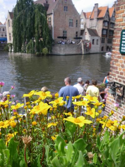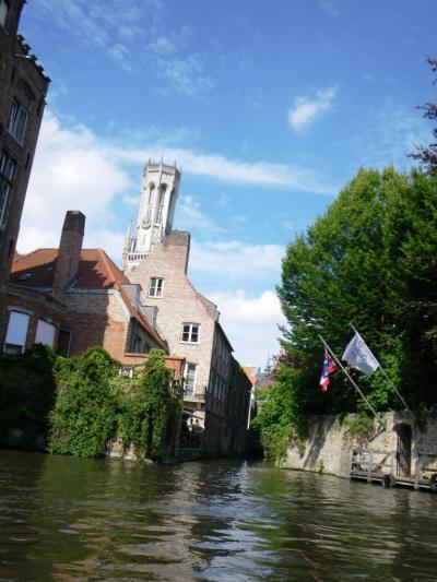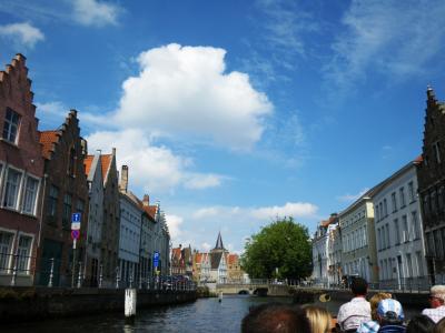 運河の街ブルージュを観光するなら、まず運河でしょう...という訳で、運河めぐりのボートに乗ってみました!運河めぐりのボート乗り場は数か所あり、それぞれの混み具合に大きな差があります...最初並んだボート乗り場の列の進みが異常に遅かったので、ボート乗り場を変えて並び直すと、8月の繁忙期にもかかわらず、待ち時間5分程で乗れました。ボートの中は、さすがに繁忙期とあって混み混みでしたが、船から眺めるブルージュの眺めは最高でした!このクルーズ、結構たっぷり巡ってガイドもたっぷりしてくれるのに、意外とリーズナブルでした。