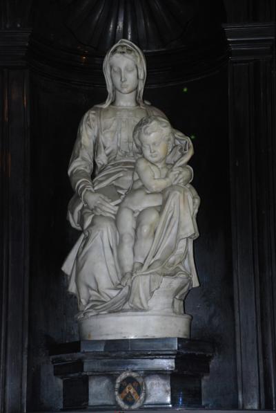 10世紀から14世紀に建てられたブルージュを代表する教会で、「ミケランジェロの聖母子像」があるということで行ってきました。教会の中に入って、すぐには見つけられませんでしたが、大勢の人だかりができていたので見つけることができました。イタリア以外の地で、ミケランジェロの作品を見ることは珍しく、昔、この街の豪商が金貨百枚で購入したものだそうです。