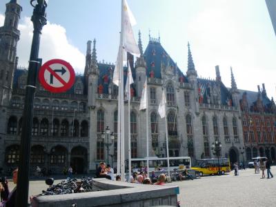 ブルージュ駅から、ブルージュの街の中心「マルクト広場」へ向かいました。ブルージュ駅からは、多くのバスがマルクト広場を経由するようで、アクセスも良かったです。街の中心地マルクト広場を囲むようにかわいいギルドハウスが並んでします!ブルージュのギルドハウスとは、また趣が違い、かわいらしい感じのギルドハウスは、ミニチュアのドールハウスのよう...。ギルドハウスの1階は、レストランが軒を連ねていました。土曜の午前中は、ここで朝市も開かれています。