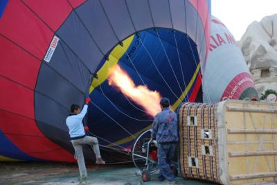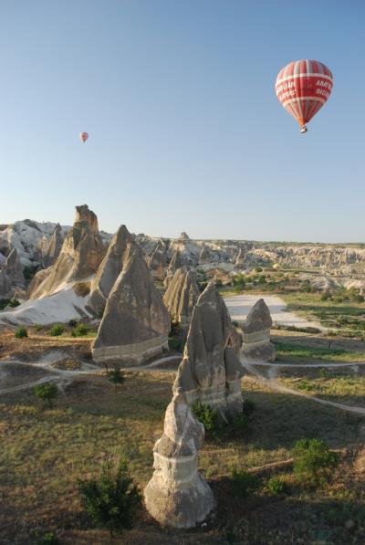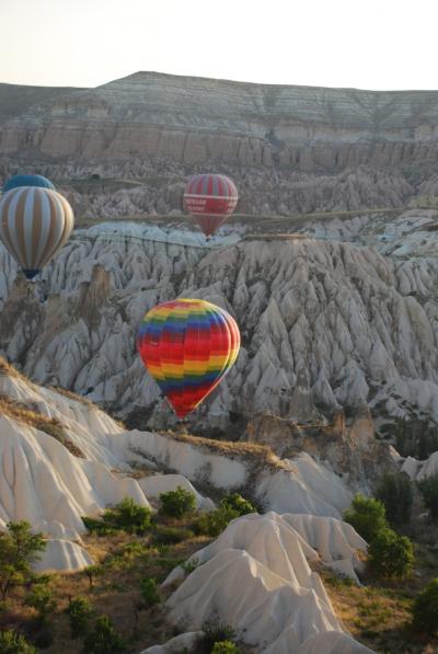 トルコ人の旦那様と日本人の奥様が経営されている気球ツアー会社「Voyager Balloons」で空の散歩を楽しみました!ホテルから紹介された会社で、ホテル経由で予約すると他よりずいぶんリーズナブルな料金だったのが決め手です。やはり日本語が通じるという安心感のせいか、ゲストは半数以上が日本人!気球には、1時間のツアーと1時間半のツアーがあり、私達は1時間のツアーなので、そんなに遠くには飛べません。ただ、雰囲気を味わうだけなら1時間で十分かなというのが感想です。高所恐怖症の私たちですが、飛ぶときも降りるときもふわっとした感覚で、全く怖くはなかったです!