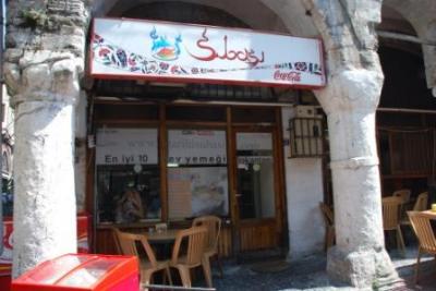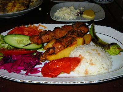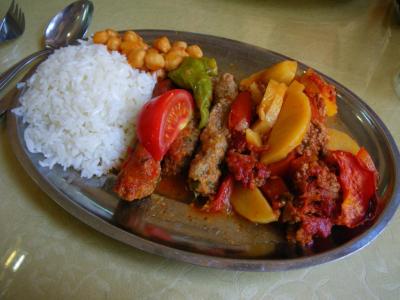 思い出しても腹の立つ、この旅で唯一ボラれたレストラン!ダイヤモンド社発行の「イスタンブール路地裏さんぽ」という本で紹介されていたレストランです。外観も中も、まさしく「ロカンタ」(食堂)そのものの庶民的な雰囲気。入ると、まず料理の説明があり、料理を選んでごはんかパスタの上に載せてもらうという、トルコではごく一般のスタイル。私が選んだのは、ミートボールとトルコ風ムサカ。このお店、めちゃくちゃ高いですが、味は確かにおいしいです。デザートにすいかを食べ、お勘定を見てびっくり!なんと、6千円弱!!!もちろん、高級レストランなら、この価格もアリだとは思うんですが、ロカンタでこの値段はバカ高!明細の1つ1つをチェックしたところ、すべての料理がバカ高なコトが判明。メニューを見ずに、料理を見て決めた私達が甘かったのかもしれませんが、トルコに1週間滞在して、1度もボラれなかったのに、1番安そうなお店でボラれたのは、かなりショックでした。(涙)