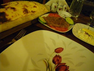 カッパドキアのレストランでは、オリジナルの焼きたてトルコパンをサーブされることが多かったですが、ここのパンも最高でした!パンというより、ナン...もしくはピタパンのような感じです。焼きたてのパンを、バターやチーズで食べるスタイル。なすのサラダ(なすを焼き、ペースト状にしてトマトやとうがらし、酢などで味をつけた冷たいディップのようなお料理)を付けて食べると、パンが止まりません。ギョレメにあるレストランの中で、毎日混んでいたのでおいしいかも?と期待して入りましたが、期待どおりのお店でした。