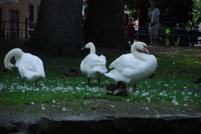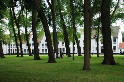 世界遺産の「ベギン会修道院」へ行きました。ブルージュの歴史地区から歩いて10分程。ブルージュのベギン会は、1245年にフランドル伯夫人によって設立されたもので、現在の建物は17世紀以降のものだとか...。白い建物が、緑の中庭を取り囲んで、静穏な雰囲気をただよわせています。静かな佇まいの中、お庭をゆっくりと散策させていただきました。敷地内にある博物館「ベギン会修道院の家」は有料ですが、お庭を静かに見学するのは無料です。