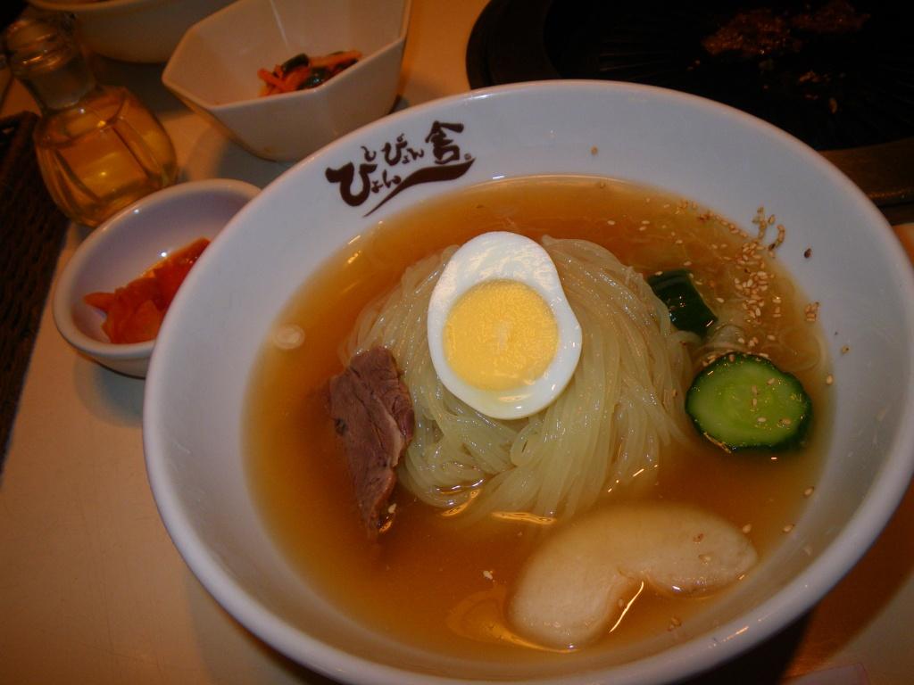 盛岡といえば、やっぱり盛岡冷麺!!!本当は、盛岡冷麺発祥のお店とされているところへ行きたかったのですが、時間が9時を過ぎ閉店していたために、急遽、ブログで評判の良いこのお店へ...。お店の外観も中もかなりおしゃれな感じ!営業時間も長いので〆の冷麺にぴったりのお店です!通は、「辛味別」でオーダーするそうなので、私も真似してみました。まずそのままで味わい、次に辛味のキムチを入れて...最後に酢をかけて...と3度味を変えて食べてみました... きりっと冷えたスープも、コシの強い麺も本当に想像以上のおいしさで、これだけを食べに、また盛岡へ来たい位です。