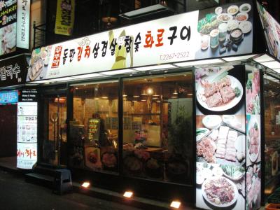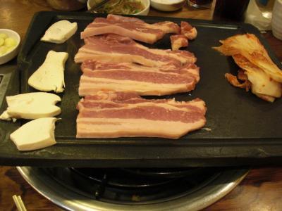 東大門付近でお店を探したところ、サムギョプサルで有名なお店「ブトゥマッ」がhit!日本人も少しいましたが、ジモティ比率の高いお店でした。厚い鉄板の上で豚の三枚肉とキムチを焼き、サンチュなどにくるんでいただきます。〆に冷麺もいただきましたが、でれも美味しかったです!サムギョプサル&ご飯2人前、冷麺、コーラ2本で27000ウォン(約1800円)コスパの高いお店です。