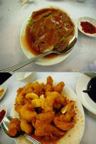 レストランに到着すると、すでに待っている人がいっぱい!幸いJCBから予約を入れていたので、待たずに入ることができました。地元のお客さんが6~70%を占めています。普段、あまりセットメニューは頼まないのですが、中華を2人で食べると、どうしてもあまり数を頼むことができないので、今回はJCBのセットメニューをオーダーしました。あわびのオイスター煮&えびチリはどちらもボリュームたっぷり!北京料理のエビチリなので、揚げたエビのてんぷらにピリ辛甘酢がかかっているタイプでした。全く辛くないので、お子さんでも大丈夫なメニューです。