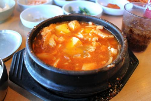 「コンボイst」にある、スンドゥブのお店「コンボイ・トーフハウス」でランチをいただきました!私は、「ぶた肉スンドゥブ」、主人は、「海鮮スンドゥブ」をオーダー。辛さはレギュラーをお願いしましたが、あまり辛過ぎず、やわらかいお豆腐が疲れた胃に優しかったです。ランチタイムは、とてもリーズナブルな値段設定で、お財布にも優しいです。