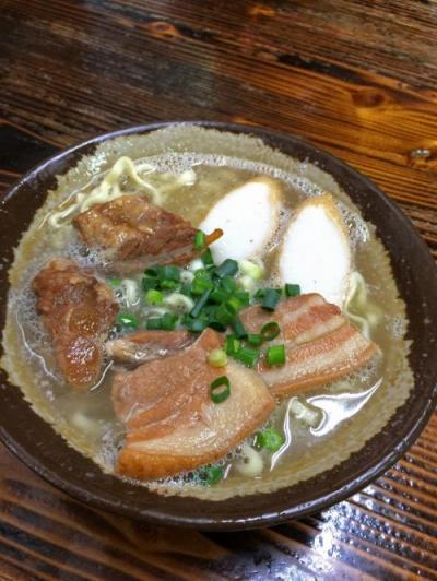 クチコミで評判の良かった『花織そば』に行って来ました!ここのスープは、豚骨スープとカツオだしのおそらくMIX。今まで食べた沖縄そばよりも、こってり風味でしたが、これはこれで美味しかったです。ここの難点は、駐車場!説明するのが難しいのですが、我が家的にはE難度。評判とおり、美味しいお店でしたが、駐車場の難易度が高すぎて、我が家の再訪はないと思います...