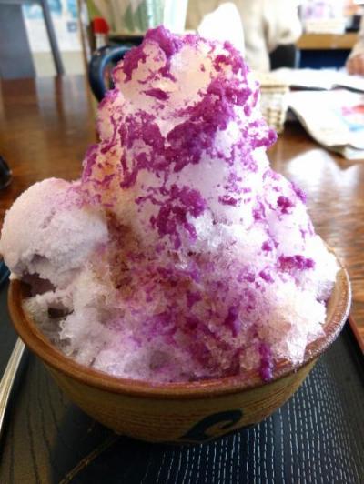 『座喜味城』の見学を終え、座喜味城の駐車場のまん前にある「鶴亀堂ぜんざい」に行って来ました!ここは、『紅芋黒糖ぜんざい』が有名で、やちむんの器に入ったカキ氷は、かなりインパクトがありました!私が食べた「抹茶みるくぜんざい」に比べると、値段も高いのですが、ボリュームもかなりあるので、『紅芋黒糖ぜんざい』の方が当りだと思います。