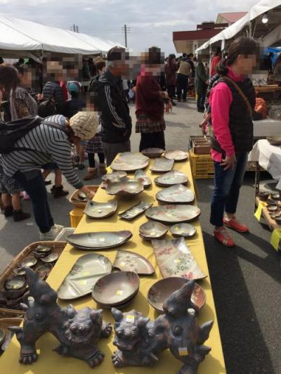 国道を走っている途中、『読谷村やちむん市』なる看板を偶然発見し、行って来ました。「やちむん市」の会場は、「ゆんた市場」前の広場です。「ちっちゃな規模の焼き物市だろうな~」、と思っていましたが、臨時駐車場までいっぱいになる程の賑わいようにビックリ!車のナンバーを見ると、ほとんどが地元の方のよう。「やちむんの里」で買うより、幾分かは安いので、普段使いに良さそうなやちむんを沢山getできました!