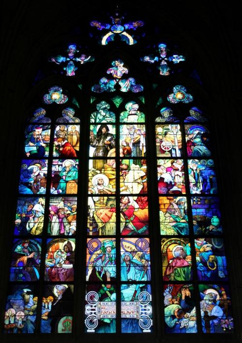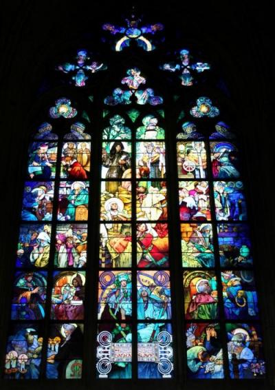 プラハ城の観光では、とりあえず1番混むとウワサの『聖ヴィート大聖堂』へまず向かいました。こちらの教会、チケットを持っていなくっても、実は途中までは入れます。でも、この教会の目玉であるムハ作のステンドグラスを目の前で見るためには、チケットがないと無理。電車の改札機のようなものがあり、チケットのバーコードをかざすと入場できる仕組みになっています。ムハのステンドグラスは、色使いといい、図柄といい素晴らしいので、ぜひチケットを買って、まん前でじっくり鑑賞してみてください!