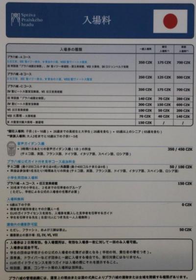 プラハ城の観光コースは、いろいろな選択肢があります。ガイドブックにも記載されていますが、チケットセンターの入口に、チケットの種類を丁寧に書いた日本語の案内板もありますので、じっくり検討して購入されることをオススメします。一通りプラハ城内の見学をするならBコースで、いわゆる「ショートコース」と呼ばれているもの。さらに詳しく見学するならAコース。こちらは「ロングコース」と呼ばれています。どちらのチケットも2日間有効です!我々は、ショートコースで網羅されている観光スポットをさらに2つに分け、2日に渡ってじっくり見学しました。