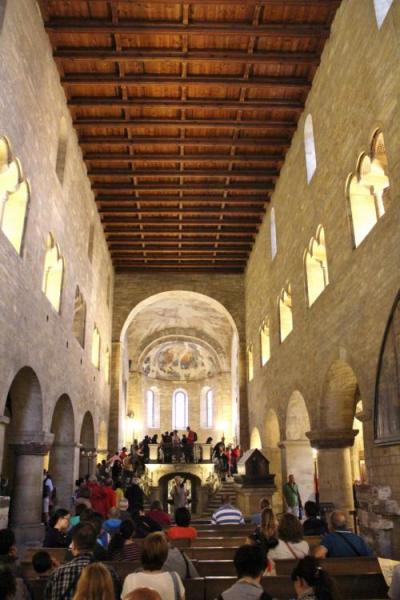 「聖イジー教会」に行って来ました!可愛らしいピンクの外観とは裏腹に、中は厳かな雰囲気に満ちています。こちらは、1142年に再建された教会だとか。ここで素晴らしかったのがフレスコ画です。正面部分のフレスコ画は、傷みが激しくほとんど残っていませんが、右翼側のフレスコ画は、色彩もはっきりと残っています。