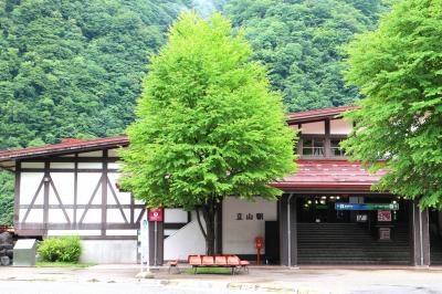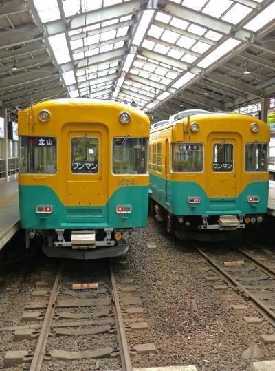 富山から立山まで、富山地鉄を利用しました!立山行き急行列車が出る1号線に行ってみると、2車両のみの列車の中はガラガラ。繁忙期には、立って乗車というケースもあるようですが、閑散期なので余裕で座れました。急行に乗りましたが、急行とはいえかなりのんびり運行。田んぼや渓谷を車窓に見ながらの1時間でした。