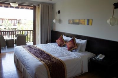 ホイアンでは、「ヴィンフン・エメラルド・リゾート」に宿泊しました。旧市街にあるクラシックホテル「ヴィンフンホテル」の姉妹ホテルで、まだ出来立ての新しいホテルです。私達が泊まったのは、建物の3階部分にある「エメラルドスイート」。真新しいフローリングの床が心地良いベッドルームでした。スイートというカテゴリーですが、続き部屋がある訳ではなく、ゆったりと広いイメージ。歩いて6~7分で旧市街にアクセスできるので、朝に夕にふらっと旧市街を散策しては、暑い日中は部屋に帰る...というサイクルで過ごしました。コスパの良いオススメのホテルです。