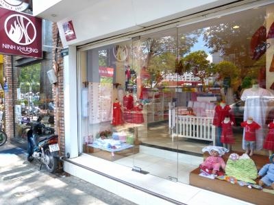 ニンクーンは、ベトナムの子供服ブランドのお店です。でも、最近では十八番の子供服より、刺繍グッズの販売で有名に...。刺繍グッズは、市場や国営百貨店でもいろいろ売っていますが、ここのは群を抜いておしゃれだし、デザインも素敵。ちょうど、フランスの会社が、大量買付けに訪れていました。かわいいベトナム人スタッフの勧めてくれるカラーやデザインが、どれもこれも私の好みにぴったりで、すっかり大人買いモードになりました。町中より値段も高いですが、個性的で質の良いモノをお探しの方にオススメのお店です。