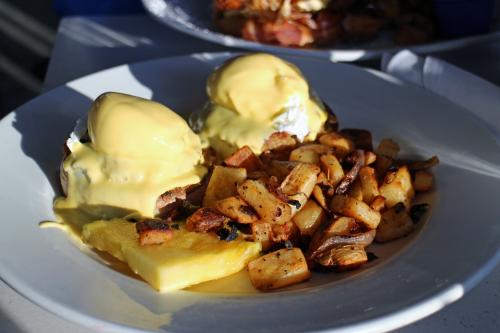 高級リゾート地『ラ・ホヤ』にある『THE COTTAGE』へ行って来ました!運よく、人気のガーデン席に座ることができました。朝8時のラ・ホヤはまだ肌寒く、ガーデン席はちょっと厳しいかも?と思いましたが、すぐにスタッフがストーブをテーブルの横に持って来てくれたので、快適に朝食を楽しむことができました。私のオーダーは、クラブケーキのエッグベネディクト。カニの身がぎっしり詰まったパテの上に、ポーチドエッグとオランディーズソースがとろ~りと載って、最高に美味しかったです!