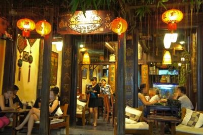 築150年の中国式家屋を改装した「イエロー・リバー」でお茶休憩をしました。中国の陰陽思想に基づく「陰陽窓子」と呼ばれる窓を残す、ホイアンで唯一の建物で、とても雰囲気のあるカフェです。陰陽窓の、陽(男性)窓テラスで、通りを眺めながらのカフェタイムは最高でした!主人は、ベトナムコーヒーのアイスバージョン。甘くて、日本のコーヒー牛乳のような味わいです。私は、すいかクラッシュをいただきましたが、これがおいしい!ホイアンは素敵なカフェが多いので、いろいろ入ってみましたが、我が家はここが1番のお気に入りで、2度通いました。