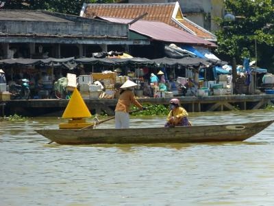 ホイアン旧市街の東端にあるホイアン市場。市場が賑わうのは、やはり午前中!活気ある市場を見るなら、午前中がオススメです。売られているのは、新鮮な野菜、果物、魚、肉類など...値札がついていないので、いちいち交渉しなければいけないのが面倒ですが、市民も利用する市場なので、そんなに高くはなさそうです...。