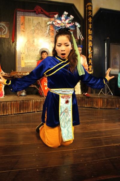 手工芸ワークショップでは、ランタンなどの製作過程を見学できます。また、ここでは、伝統音楽コンサートが日に2度行われていて、どちらかというと、このコンサート目当てのお客さんの方が多い位です。コンサートの始まる15分前に最前列席を確保してスタンバイ。観光共通チケットのみで、コンサート自体は無料ですが、ベトナム音楽の演奏や、伝統的な舞、歌アリ、一人芝居アリで、なかなか楽しめました。