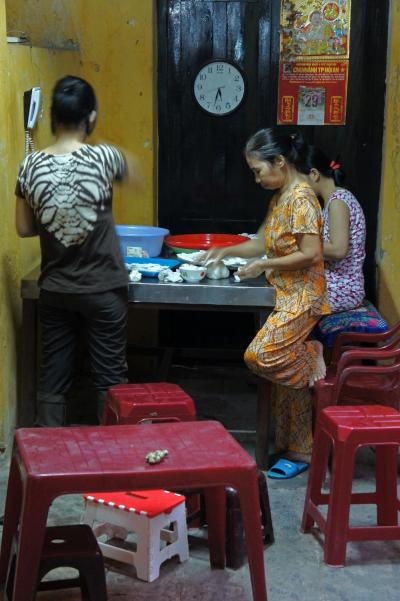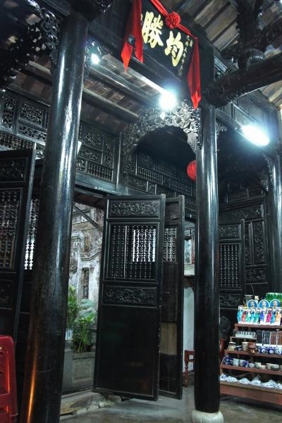 廣勝家(クアンタンの家)は、300年前に建てられた平屋の伝統的建築様式の建物です。中に入ってみると、立派な柱や梁が黒光りしていて、歴史の深さをひしひしと感じます。建物は、伝統的うなぎの寝床スタイルで、奥へ奥へと進むと、家人のみなさんが、何かを調理中でした。歴史的な建造物ですが、ちゃんと今もそこで生活が営まれています。