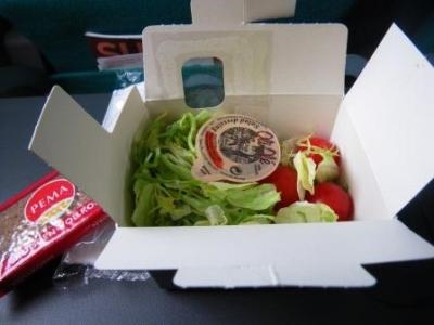 しかも箱にずっしりする位たっぷりのお野菜。サラダがメインというのは初めてでしたが、旅行中は、どうしても野菜が不足しがちなので、この機内食はウェルカムでした。- 旅行時期