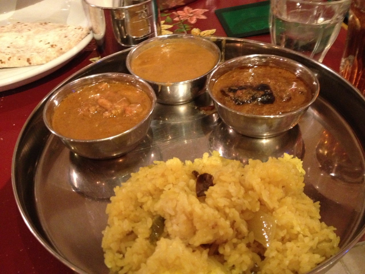 E-maの5階にある「カンテ グランデ」に行って来ました。インド料理のお店なんですが、実はスイーツが充実しているため、女子に人気のお店です。インドらしい(?)かわいいインテリアのお店です。3種カリーとプラオ(インド風ピラフ)のセットをオーダー。見た目は良かったのですが、スパイスの香りも少なく辛さだけが目立つ味でちょっとがっかり...。お目当てのスイーツに辿り着くこともなくお店を後にしました。