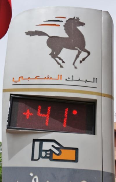 8月の真夏にマラケシュに行きました。それまで滞在したカサブランカ、フェズとは全く異なる桁違いの暑さにびっくり!ちょうど熱波が来ているとかで、日中は毎日45度越え。あっという間に熱中症にかかりました。タクシーもレストランも、市場も、とにかく冷房設備のあるところはほとんどなく、唯一のホテルでさえ、クーラーが故障してしまい、かなり辛かったです。真夏の時期に、メディナをうろうろするのは結構キツイです。