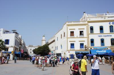 エッサウィラは、モロッコの中でも特にヨーロピアンな雰囲気のある海辺のリゾート地です。治安も良く、メディナの中をいろいろ歩き回りましたが、特に危険な場所もないようでした。市場まで行くと、地元の方がいっぱいですが、ボラれることもありませんでした。荷物運びのカルーサ(リヤカー)のおじさんは、高い値段をふっかけて来るので、がんばって交渉する必要があります。カルーサの値段は、フェズよりかなり高めでした(それでも安いですが...)。