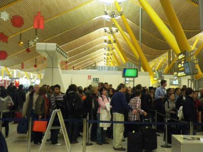 ちょうど、アムステルダムのスキポール空港でテロ未遂事件があった後だったので、かなりセキュリティチェックは厳格でした。おかげで、セキュリティゲートが混み混み。イベリア航空のビジネスラウンジに行ってゆっくりお茶でも...という目論見は大きくはずれ、2時間半前に空港についていたのに、ゲートについたのは結構ギリギリでした。