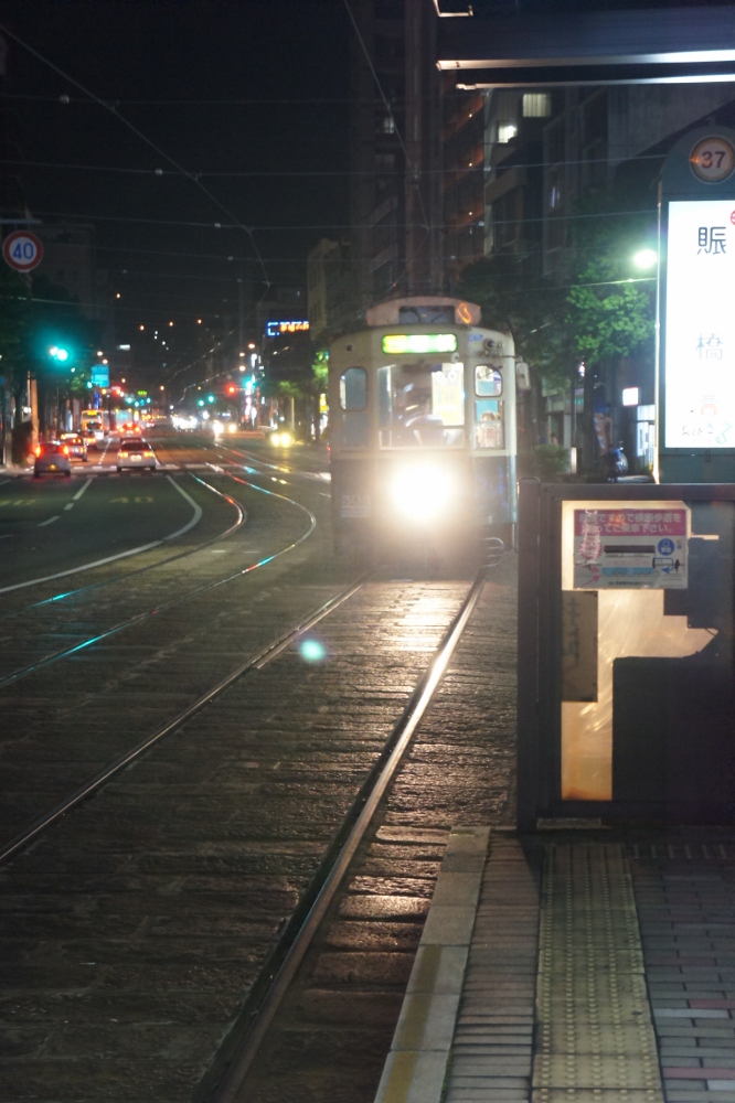 「賑橋」とはいいながら、あまり賑わってはいませんでしたが、眼鏡橋周辺の観光をするならこの駅での下車が便利です。ここで下車し、下れば3~4分で眼鏡橋や中通商店街に行くことができます。夜になると、本数が少なくなるのか電車到着まで結構待ちました。