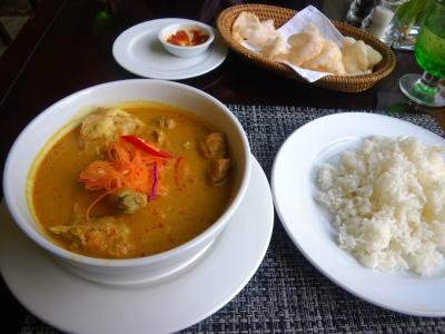 アンサナリゾートの中にある「ロータスカフェ」でランチをいただきました。主人は、インドネシア風レッドカレー、私は、デラックスハンバーガーをオーダー。席につくと、まず「えびせんべい」がテーブルに置かれますが、これがディップに付けて食べると、とまらなくなる程美味でした!ちなみにフリーです。お料理はどちらもおいしく、また繊細な味付けで、インドネシア風というよりシンガポール風で、洗練されています。お値段はそれなりにしますが、満足するランチでした。