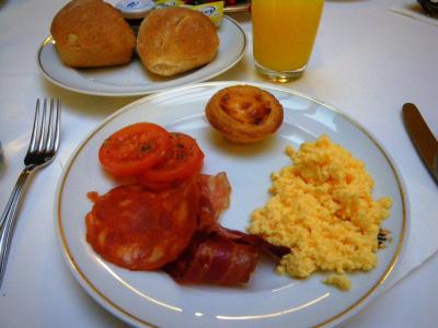 朝食のバラエティ自体は、そんなに豊富ではありませんでしたが、さすがリスボン!焼きたてのパステル・デ・ナタ(エッグタルト)が、ビュッフェメニューにありました。エッグタルトの本場だけあって、これが結構おいしくってハマりました。