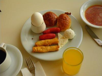 WOWエアポートホテルのカフェレストランで朝食をいただきました。4つ☆ということで期待していたのですが、見事に裏切られました!置いてある料理はバラエティも味も貧相。ジュースに至っては、子供の頃飲んだ粉末を水に溶かしたジュースの味そっくり!コーヒーも驚く程マズイ。