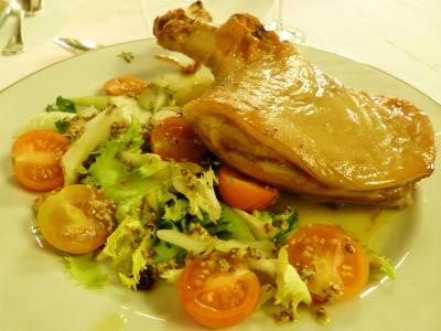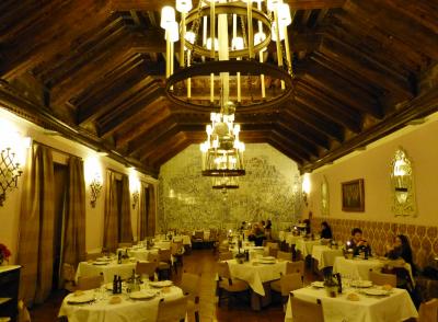 クリスマスイブに予約を入れていたところ、宿泊する2週間程前にパラドールからクリスマスディナーのお誘いメールが届きました。クエンカは小さな町なので、イブやクリスマスには軒並みクローズになります。予約を入れて正解でした。ちなみに、アミーゴメンバーということで、5ユーロの割引がありました。 スープ、魚料理、肉料理、デザートとフルコースで出てくるお料理はどれもおいしかったですが、日本人にはボリューム多すぎでした。