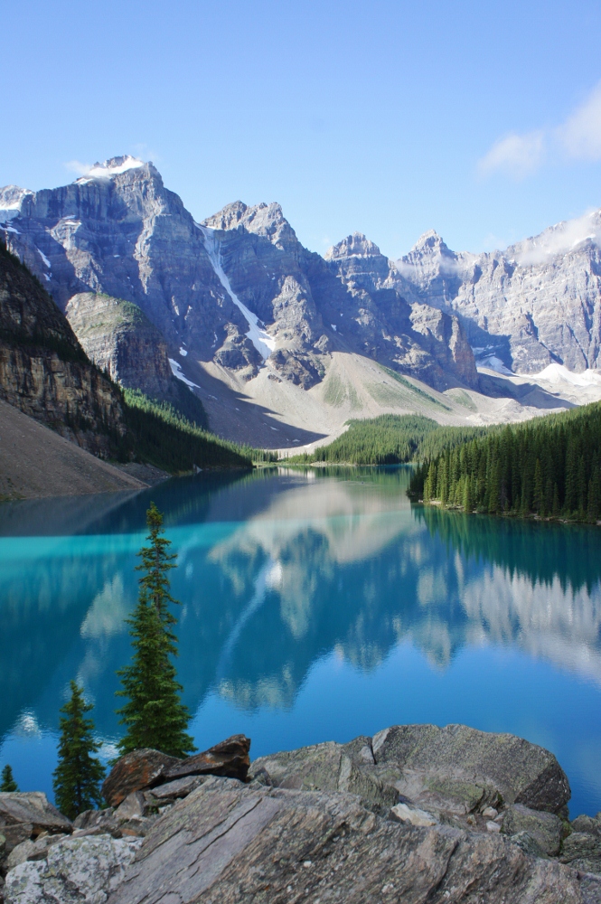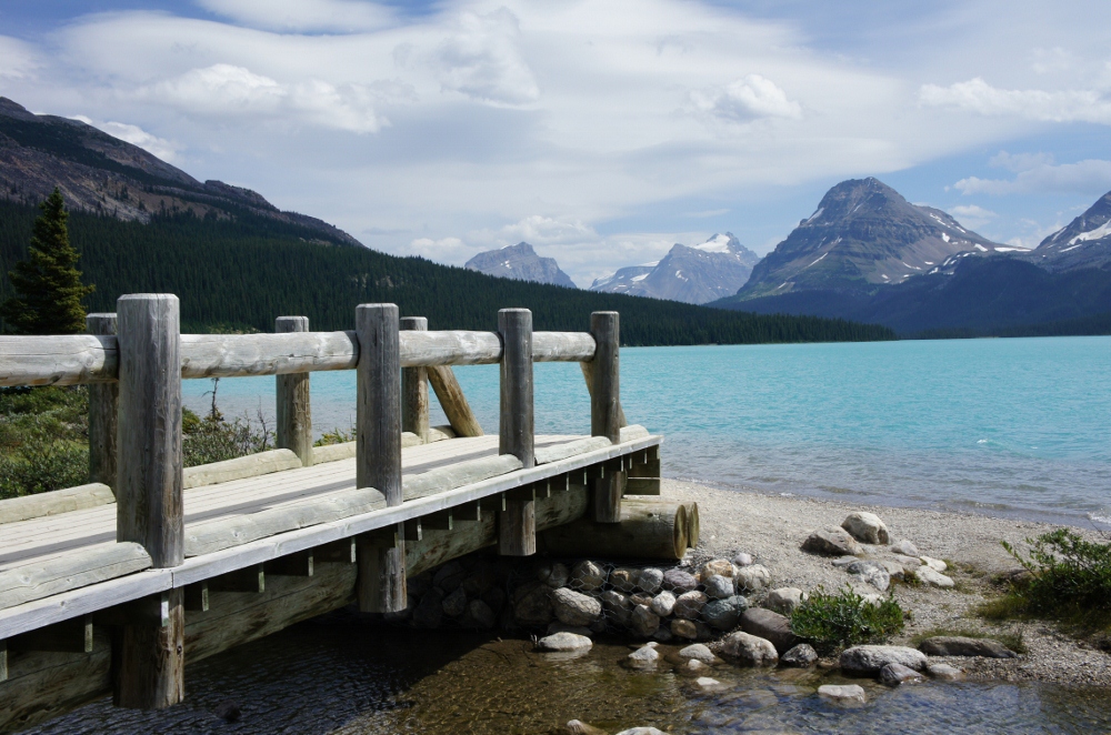 朝、ボウ湖の横を通ったとき、水面が鏡のように山々を映し出している様子がそれは見事でした!昼過ぎに戻ると、風が出てきたせいで、逆さの山々を水面に見ることはできませんでしたが、それでも雄大な景色に心を癒されました。人が少ないので、静かに散策したい方にピッタリの湖です!