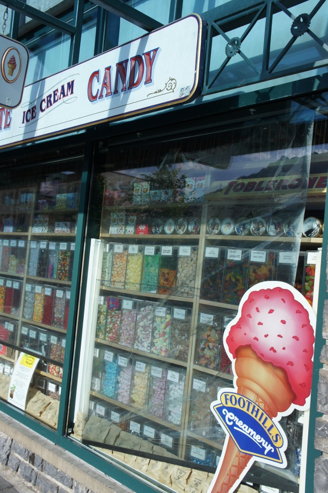 ちょうど持って行った「ノドあめ」がなくなったので、それらしいモノを求め入ってみました。お店の中はケースに入った色とりどりのキャンディでいっぱい!好きなものを好きなだけ買うシステムで、料金は重さで決まります。乾燥の激しいカナダではのど飴は必須。ミントのキャンディを買いましたが、結構甘いお子ちゃま味でした。