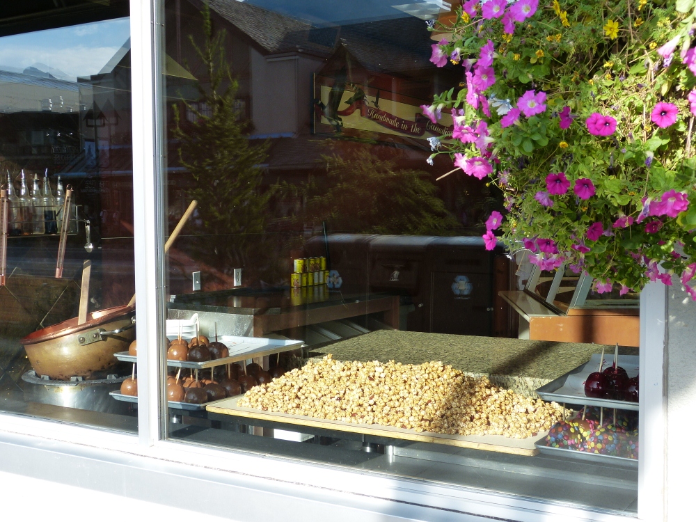 バンフ通りにあるチョコレートショップです。バンフ側の通りからは、りんご飴ならぬりんごチョコレートや、キャラメルポップコーンを作っている様子が窓越しに眺められます。お店に入ってみると、ショーケースにブロックチョコレートやナッツの入ったチョコレートがあり、おやつにとナッツチョコを買ってみました。ナッツも大きめのがざっくり入り歯ごたえ抜群!美味しいのですが、やはりお味は甘め...。ちょっと食べる分には十分おいしいです。