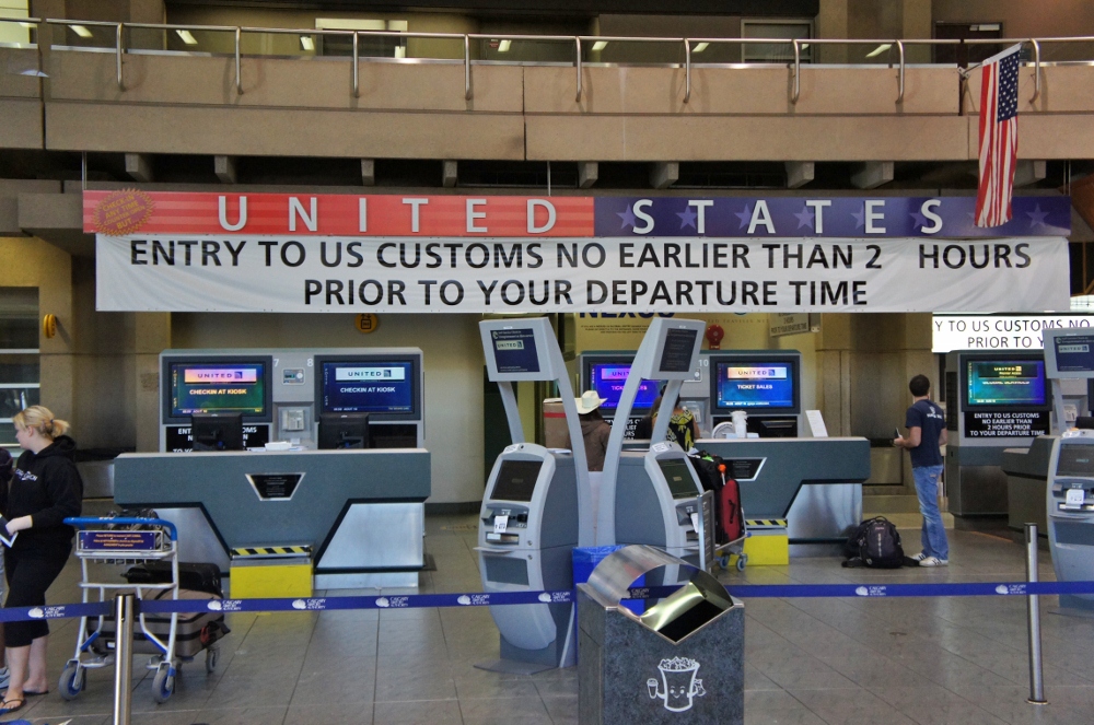アメリカから到着する場合はさほどではありませんが、アメリカへ出国する場合の手続きが面倒なので、クチコミさせていただきます!まず、空港のアメリカ専用エリアでセルフチェックインを行う→荷物タグをつけてもらう→預け荷物を持ったまま入国検査の長~い列に並ぶ(アメリカの入国検査をすでにカルガリーで済ませます)→アメリカ入国検査→TSA係員に預け荷物を渡す→手荷物検査...という具合。アメリカに到着後は、もう入国審査を終えているので、アメリカ到着後は預け荷物をピックアップするだけです。